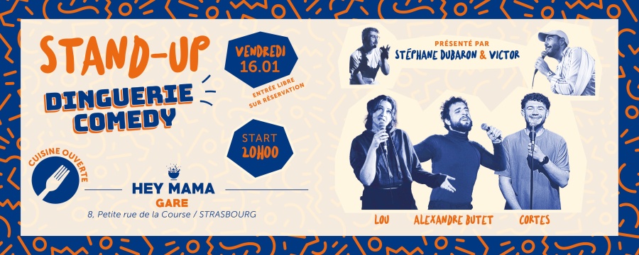 Plateau de stand-up 3x20 minutes avec Alexandre Butet, Cortes et Lou MCs/Dingueries: Stéphane Dubaron et Victor Entrée libre sur réservation, sortie au chapeau Pense à... Lire la suite