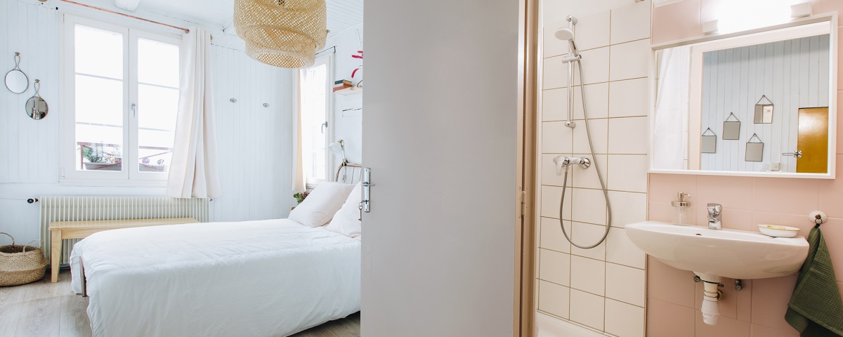 3 voyageurs · 1 chambre · 2 lits · 1 salle de bain